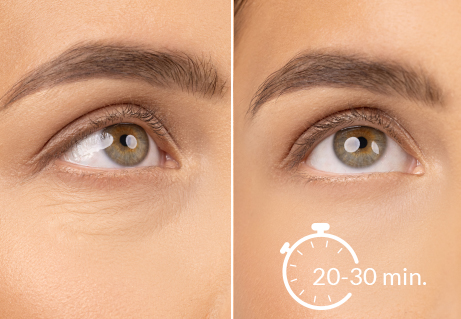 Ang patch formula na may collagen, retinol, ceramides at vitamin C ay nagbibigay ng komprehensibong anti-aging at pampalusog na benepisyo. Pagkatapos ng unang paggamit pa lamang, ang balat ay nagiging lubos na hydrated, mas makinis at mas toned. Ang regular na paggamit ay nakatutulong magpabawas ng dark circles at puffiness, nagpapabuti ng firmness at nagpapaliwanag ng eye area, nagbibigay ng malinaw na mas batang itsura at pahingang hitsura na maihahambing sa resulta ng mesotherapy o carboxytherapy.